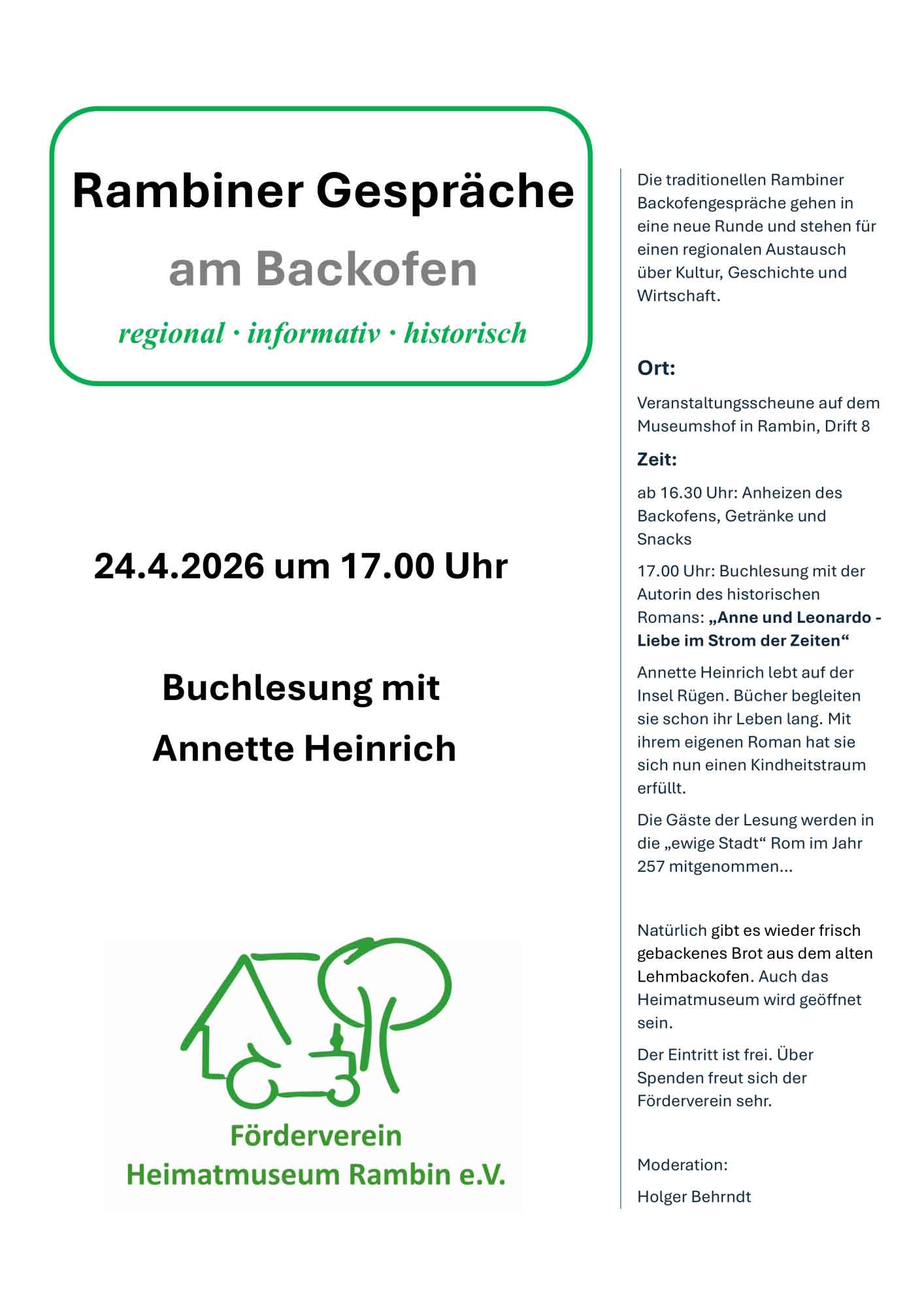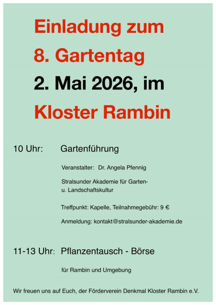 Der Förderverein Denkmal Kloster Rambin und der Rambiner Sozialausschuss laden ein!