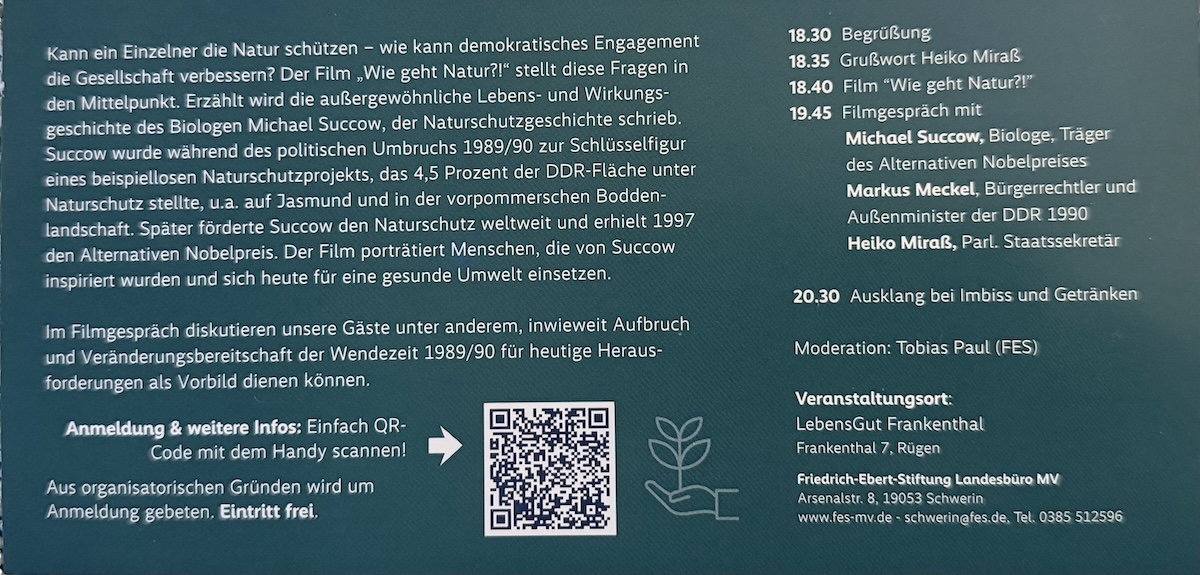 LebensGut Frankenthal: Film „Wie geht Natur?!“ mit Michael Succow | Diskussionsveranstaltung