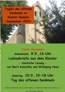 Es lädt ein: Häuserverein Leben ins Kloster Rambin e.V., Förderverein Denkmal Kloster Rambin e.V.i.G.